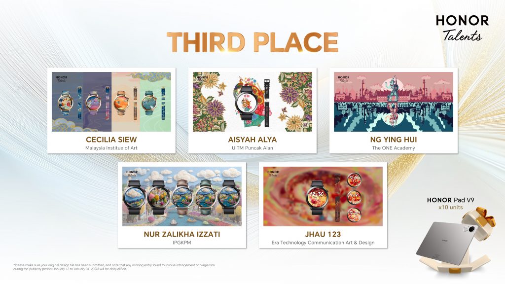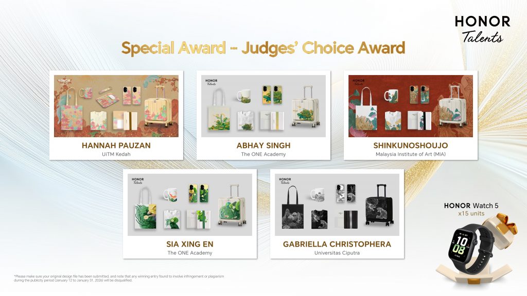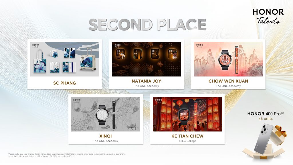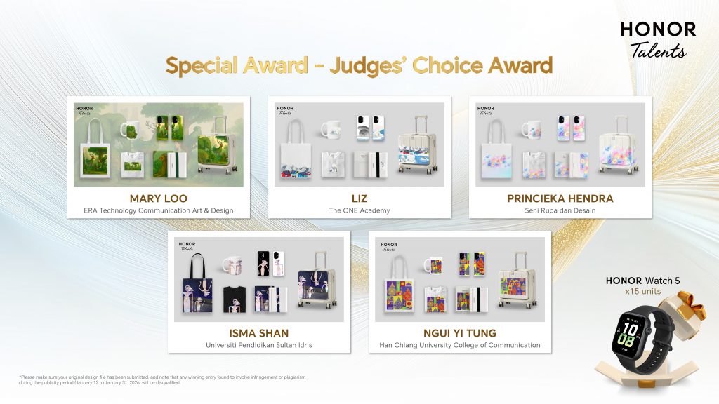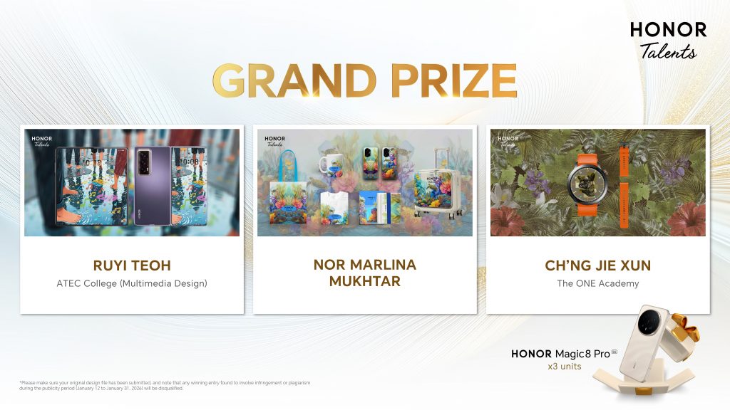Out of a competitive field, 33 artists were selected for their creative contributions to HONOR’s product ecosystem. The Grand Prize winners—Ruyi Teoh, Nor Marlina Mukhtar, and Ch’Ng Jie Xun—each received the flagship HONOR Magic8 Pro. Other top performers were awarded the HONOR 400 Pro, Pad V9, and Watch 5.