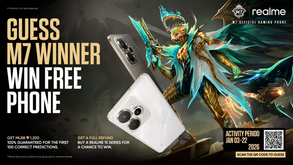 In a move set to excite Malaysia’s vibrant Mobile Legends: Bang Bang (MLBB) community, realme has announced the “Guess M7 Winner, Win Free Phone” campaign. This initiative strengthens realme’s partnership with MOONTON Games as the official gaming phone sponsor for the prestigious M7 World Championship, which is currently underway in Jakarta.
